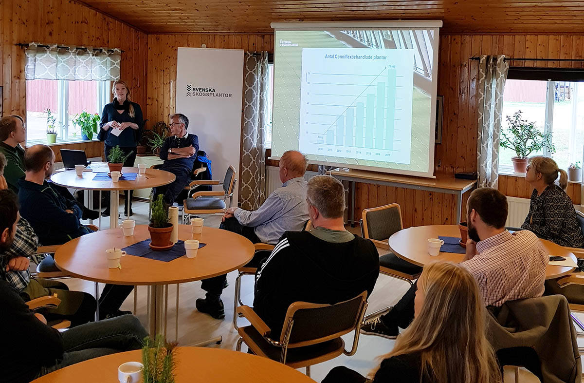 Under dagen visades plantskolan och dess historia upp. Professor Anders Lindström från Högskolan i Dalarna föreläste om plantetableringar under tuffa förhållanden och snytbaggens framfart.