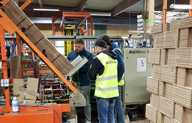 Bild: Platschef Peter Forsberg visar packlinjen
