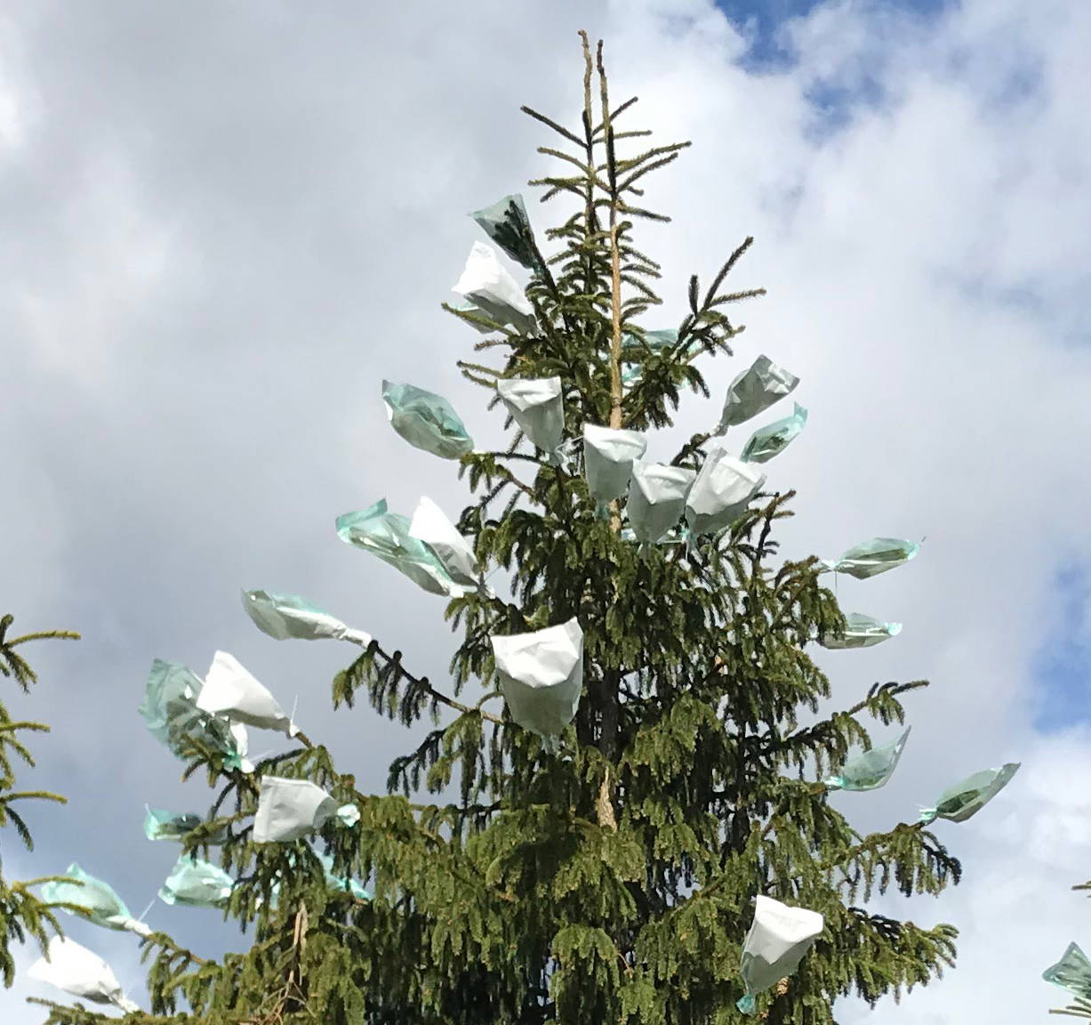 Lyckligtvis blommar granen fint i år och det genomförs stora insatser för att blommor och kottar inte ska drabbas av angrepp.