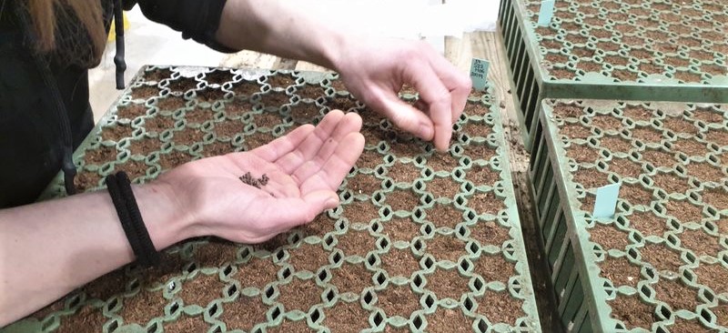 - Det rör sig om ett par tusen granfrön som vi har handsått för att vi ska veta exakt vilket frö som ligger i varje kassett. Sedan har vi skött om dem och sett till så att de växt till sig. Från nästa år ska de odlas vidare på Sveriges Lantbruksuniversitet (SLU) och smittas med rotröta.
